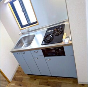 キッチンをパステルカラーのライトブルーにリフォームすること。