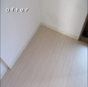 ですが、afterでは明るい木目調のクッションフロアへ貼り替えたことで
